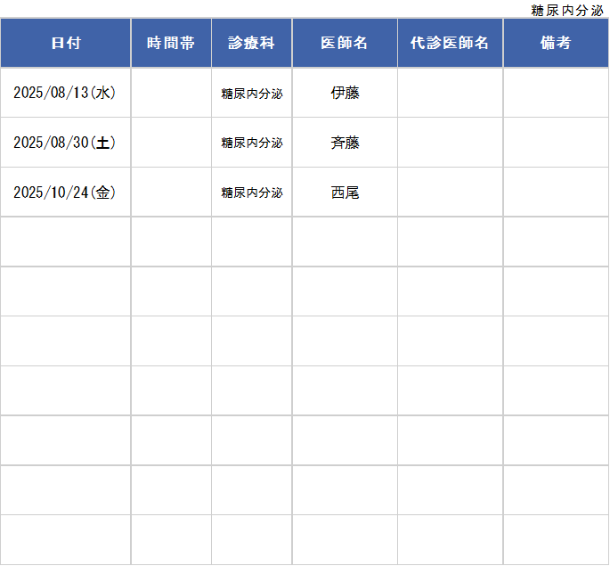 ホーム > 診療科・部門一覧 > 糖尿病内分泌内科 > 外来診療表