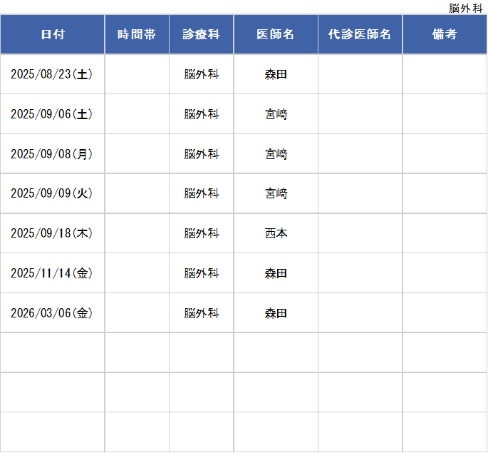 | 宮﨑 | 宮﨑 | 森田 | 長谷川 (第1・3週) |