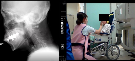 食物を食べたり、水分を飲んだりすることの障害である「摂食嚥下障害」に対して、食事評価(姿勢調整、食形態、とろみの濃度、一口量、介助方法など)や練習を行い、安全に食べることができるようにアプローチします。また必要に応じて、レントゲン透視下による嚥下造影検査も実施しています。