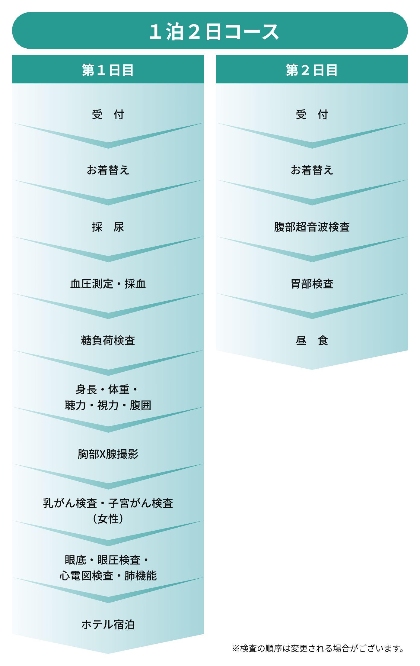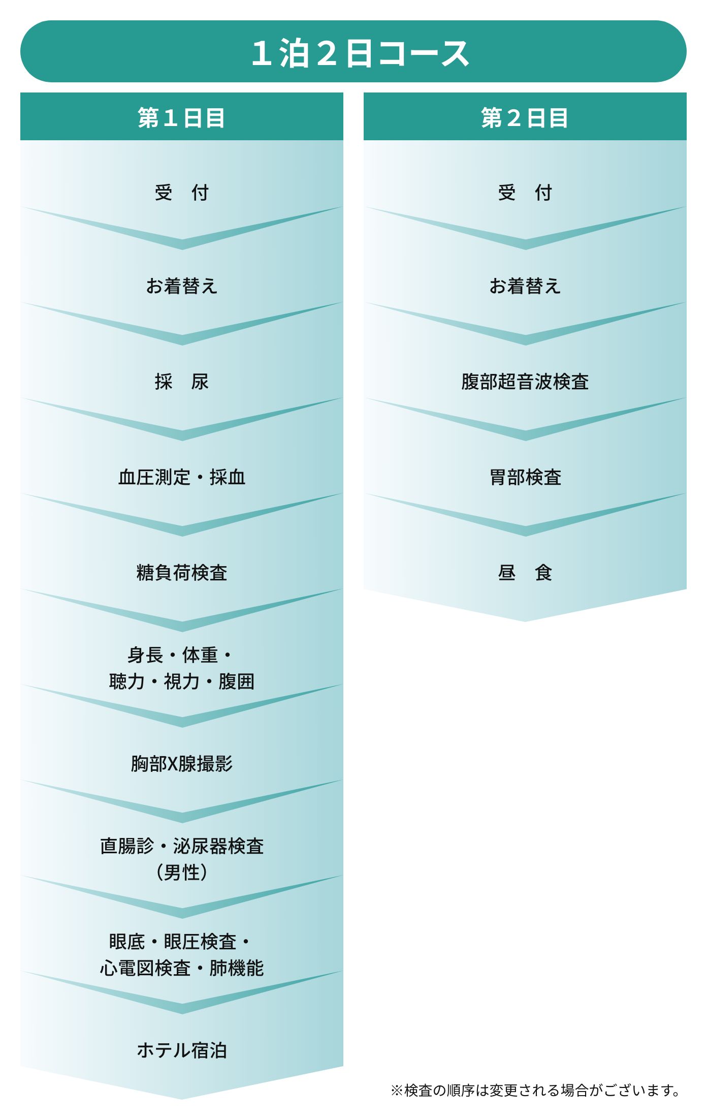 | 検査項目 | 生活習慣病 | 日帰り人間ドック | 一泊二日ドック | ||