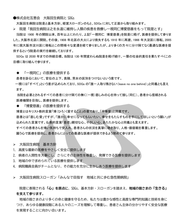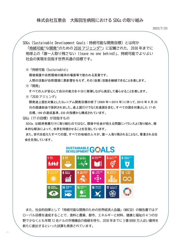 ホーム > 新着情報 > 大阪回生病院のSDGsの取り組みについて