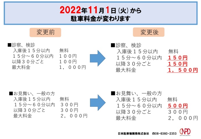 ホーム > 新着情報 > 駐車料金変更のお知らせ